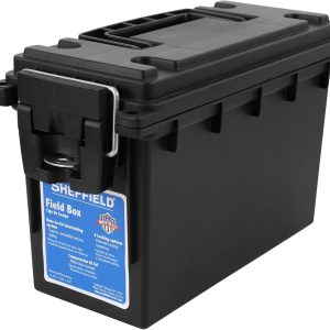 Sheffield 12629 Ammo Storage Box, Stackable .30 Cal Field Boxes, Water and Dust Resistant, Lockable Storage Box with Handle, Secures Hunting Gear, Supplies, and Bullets, Made in USA, Black, 1-Pack