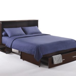 Murphy BedNight & Day Furniture Clover Queen Murphy Cabinet Bed with Gel Memory Foam Mattress, Freestanding Fold-Out Credenza Design, Built-In Outlets & USB – Dark Chocolate Finish