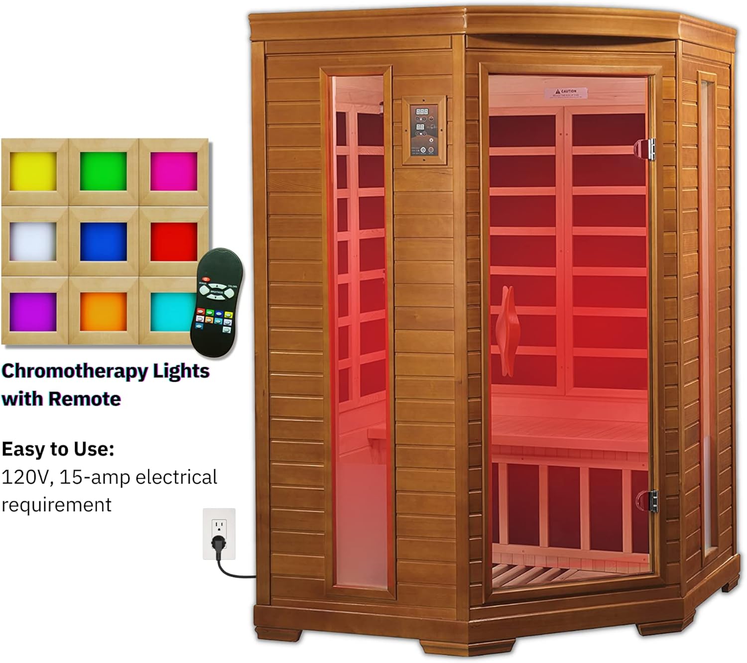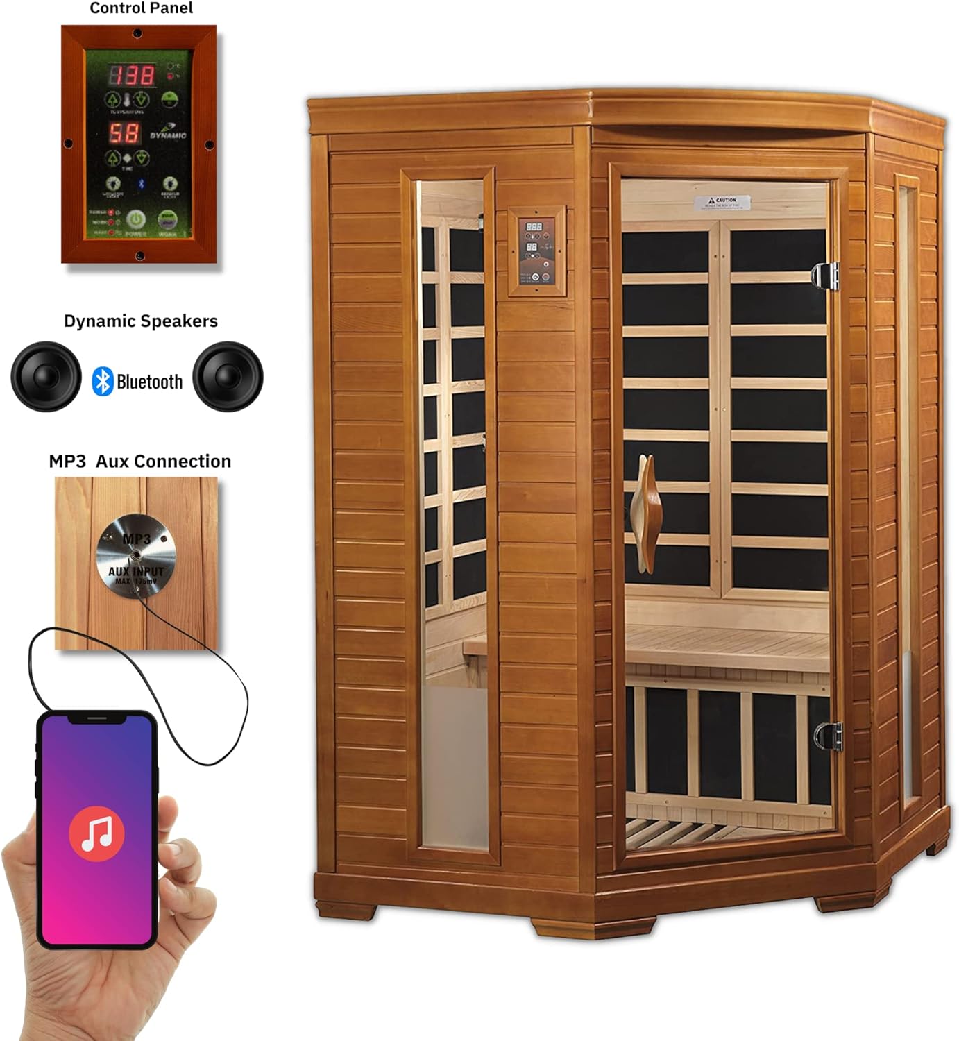 Experience the perfect blend of wellness, comfort, and design with the Dynamic Saunas AMZ-DYN-6225-02 Bilbao 2-Person Corner FAR Infrared Sauna — your personal sanctuary for relaxation and rejuvenation.