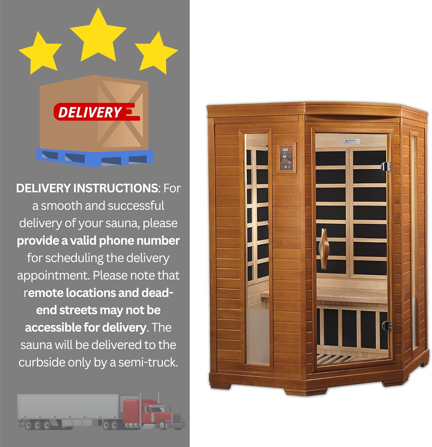 This item will be delivered curbside only by a freight carrier. Please ensure your delivery area is accessible and provide a valid phone number for scheduling. If you would like the sauna placed at a specific location on your property, you must make arrangements with a third-party delivery provider in advance.