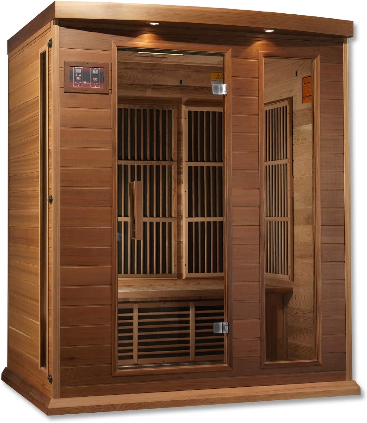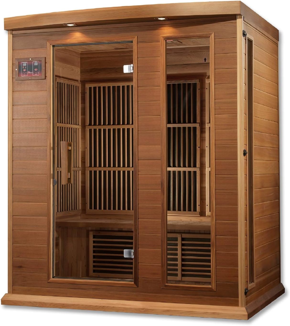 Bring the luxury of a spa experience into your home with the Maxxus 3 Person Low EMF FAR Infrared Carbon Sauna, crafted from premium Canadian Red Cedar for beauty, durability, and superior insulation. Designed to comfortably fit up to three people, this sauna uses 7 strategically placed Low EMF FAR Infrared Carbon heating panels to deliver deep, even heat distribution.