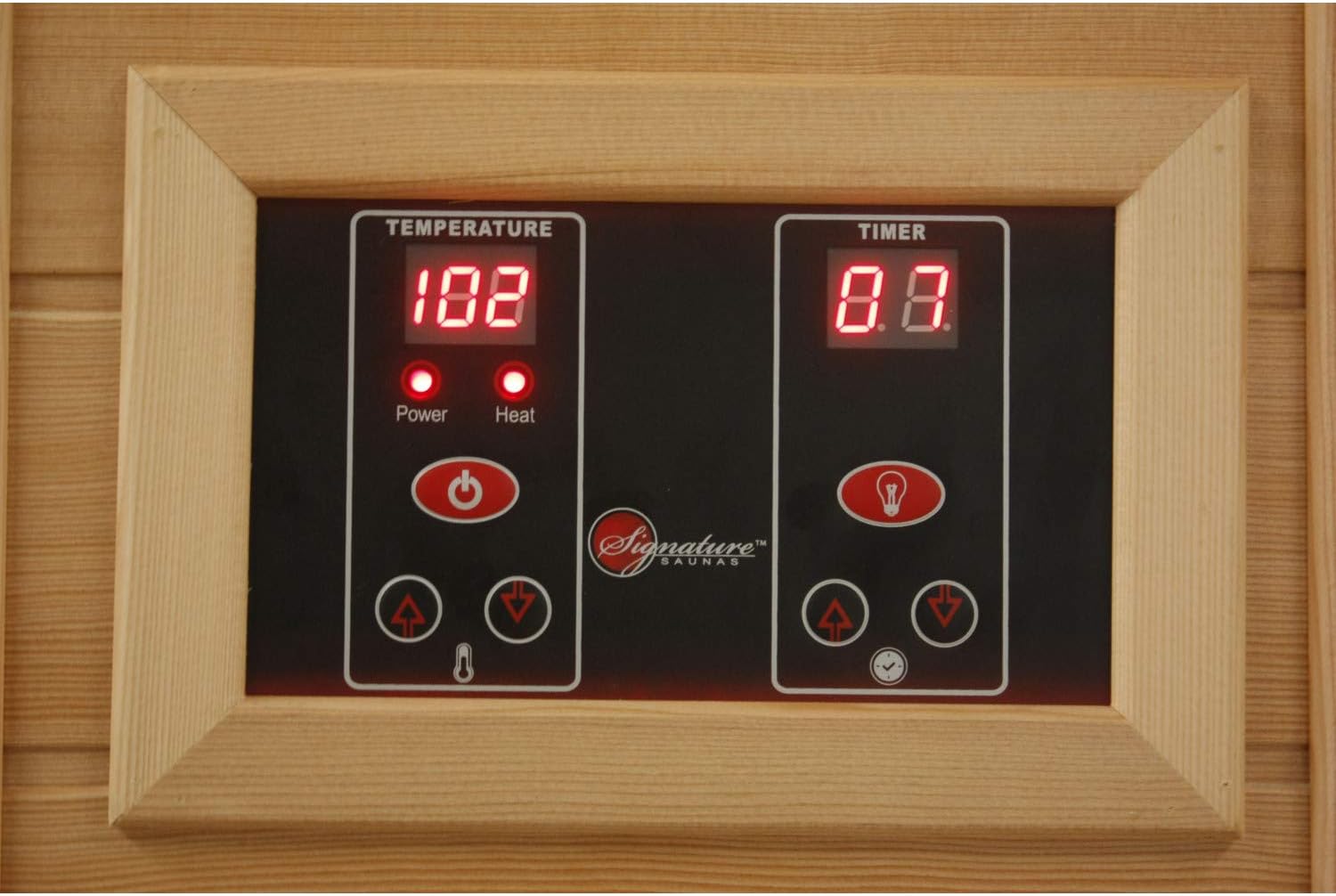 The natural reforested Canadian Red Cedar wood construction, combined with bronze-tinted tempered glass doors and side windows, gives this sauna a warm, elegant appearance that enhances any home interior.