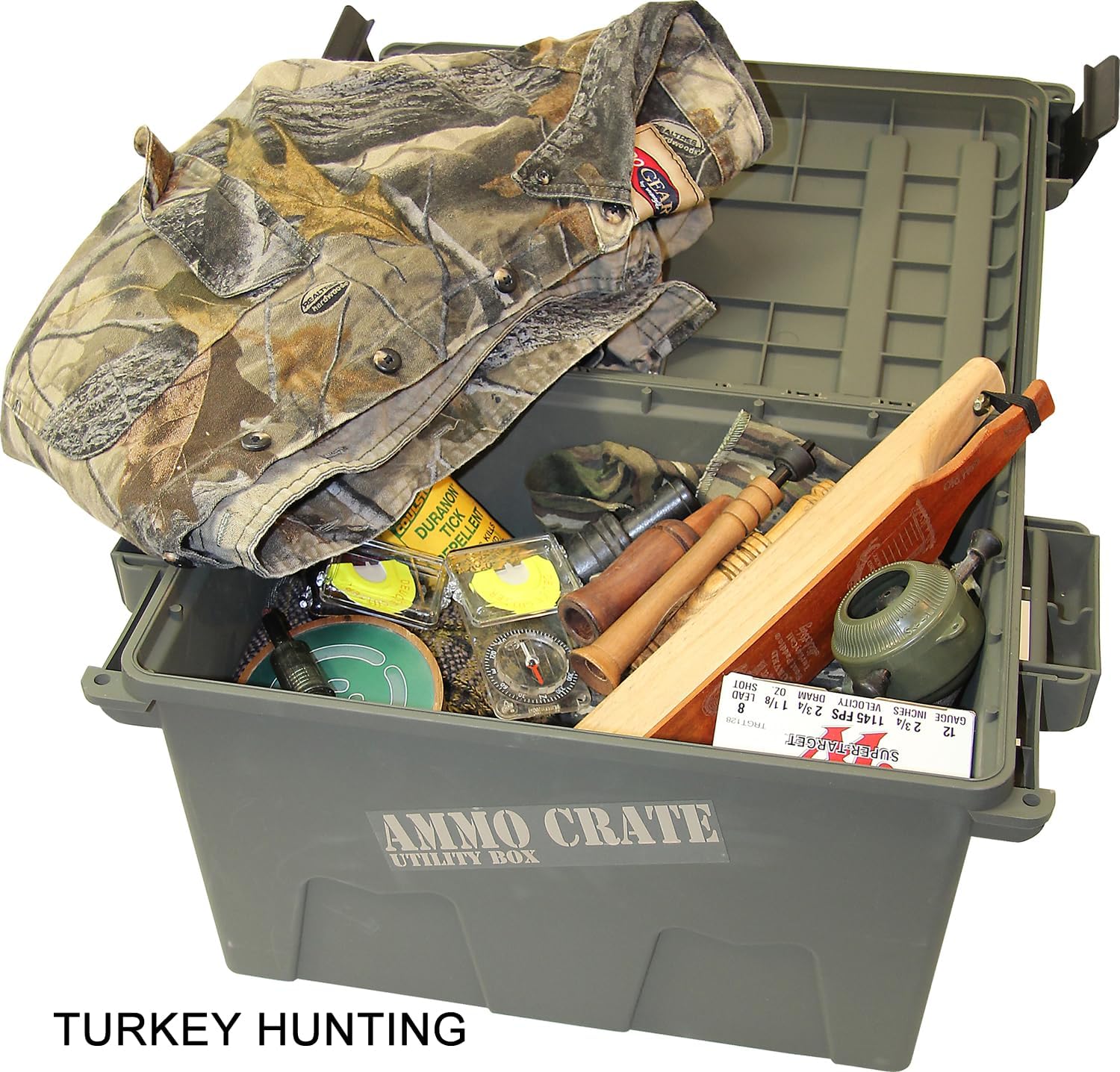 MTM ACR7-18 Ammo Crate Utility Box, Ammo, survival or hunting gear storage, O-Ring seal for water resistant dry storage, Double padlock tabbed for security, Carries 65lbs of gear, Army Green