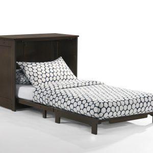 This cabinet bed includes a gel-infused memory foam queen mattress, delivering cooling comfort and excellent support. The built-in power outlets and USB ports provide convenient access to device charging and bedside power.