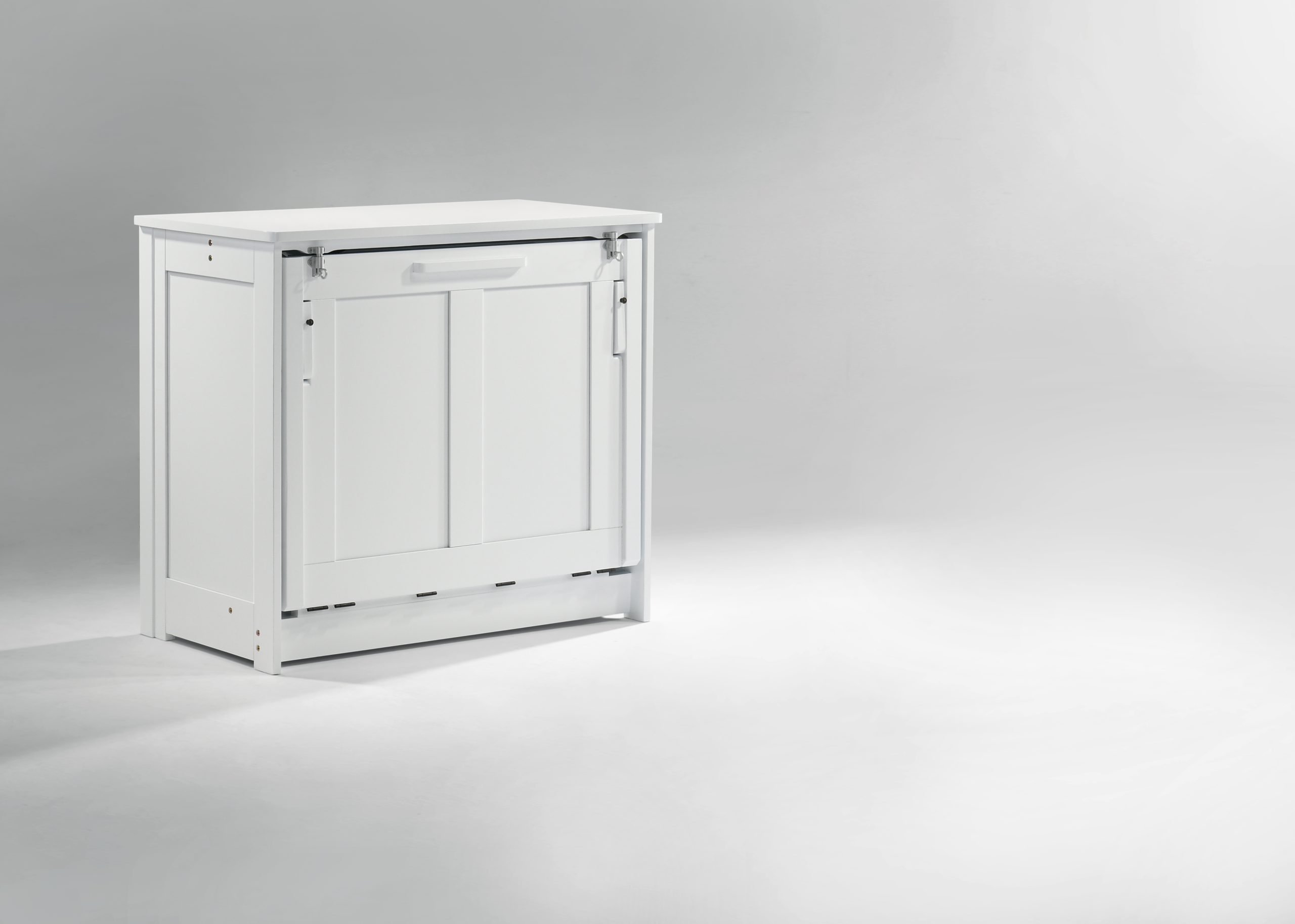 The Orion Twin Murphy Cabinet Bed in White offers a clean and modern space-saving solution for any home. Its sleek white finish complements all decor styles, and the cabinet transforms effortlessly into a twin-size bed in under a minute.