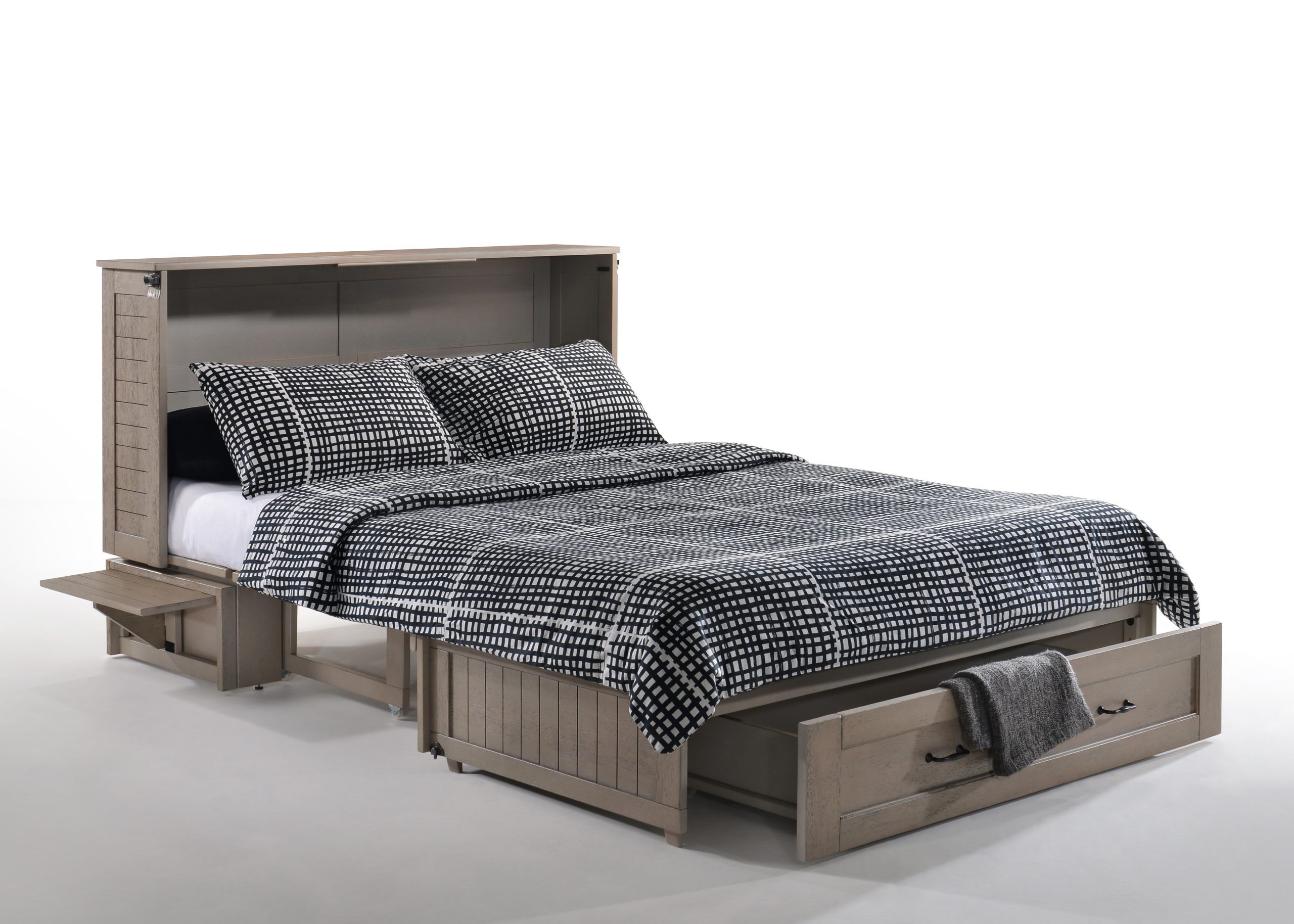 Night & Day Furniture Poppy Murphy Cabinet Bed – Brushed Driftwood – Queen Gel Memory Foam, USB Ports, Easy Convert Space-Saving Guest Bed